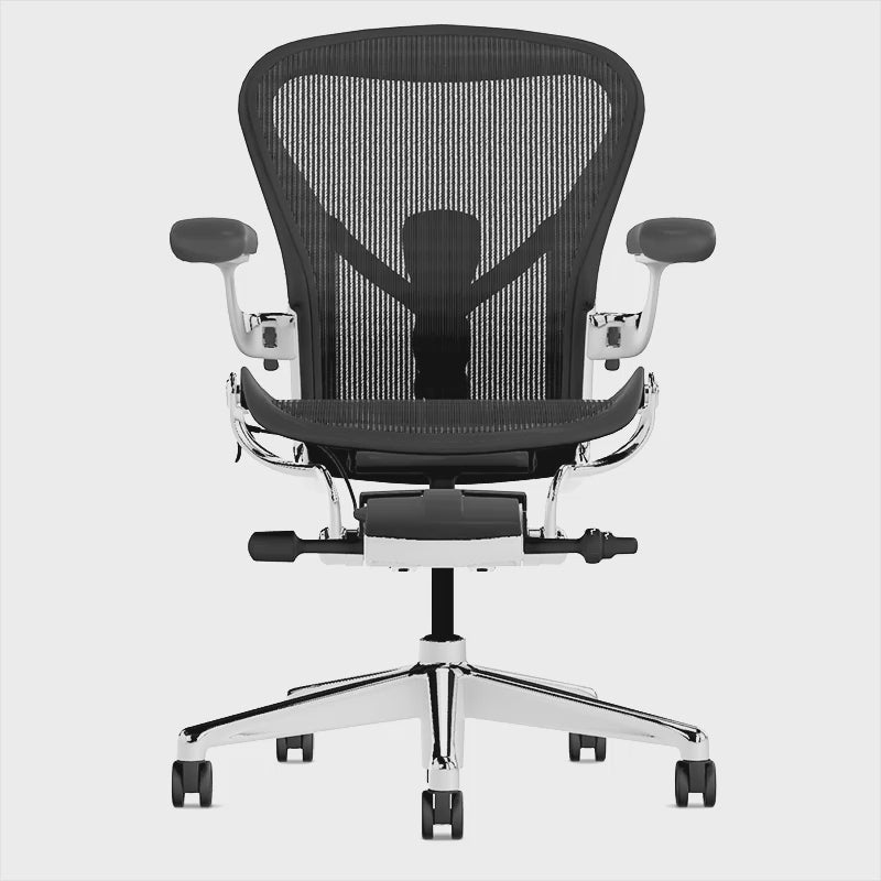1994年にデビューしたアーロンチェアは、オフィスチェアの常識を一変させたチェアです。ハーマンミラーは20年間にわたって培った技術的かつ人間工学的な機能を取り入れ、再設計しました。より精密なチルトメカニズム、調節可能なポスチャーフィットSL、そして8Zペリクルサスペンションを備え、優れた性能で座る人のパフォーマンスを高めます。エクスクルーシブ(特定の人)ではなくインクルーシブ(すべての人)にフィットするための3種類のサイズが用意されており、身体計測的に最も広範囲な体型に同じ快適性を提供しています。高性能と科学に裏打ちされた人間工学が象徴的なデザインと出会う場所、それがアーロンチェアです。